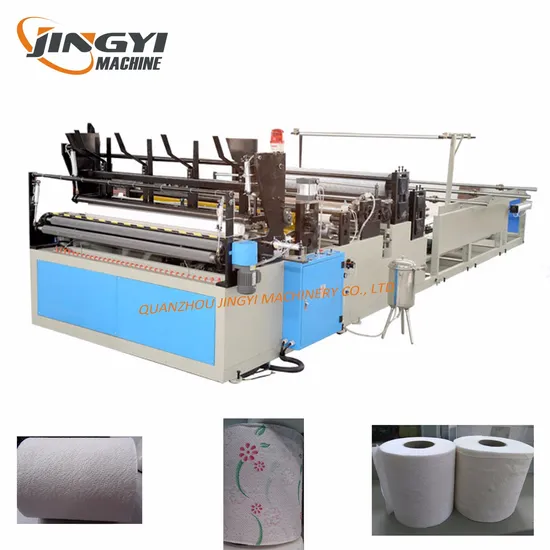 Equipment Description: This is an automatic rewinding machine for toilet paper and kitchen towel, with the function of roll core auto feeding, embossing, glue lamination, perforating, trim sealing and so on. Can also do kitchen towel with lamination unit, also can do with colorful lamination. This machine is designed and made according to CE certificate standard, with safety safety-guard door, emergency stop and other safety devices, to protect operators. With automatic roll core feeding unit, without manual roll core feeding, after rewinding will automaticly push out the log, and immediately rewind again. Can adjust the specification of the roll core easily. With international advanced PLC programmable controlling technical, man-machine interface operation table. The production data and technical parameters show on touch screen. With high precise perforation blades, lower noise, clearer perforation, can adjust the perforating distance with bigger range. Jumbo roll tension controlling system, Pneumatic lifting the jumbo roll; Can use the steel to steel embossing unit for point to point embossing rollers, make the paper softer, and double layers match well. This equipment is durable and wearable with simple operation and maintaining. Our workshop: