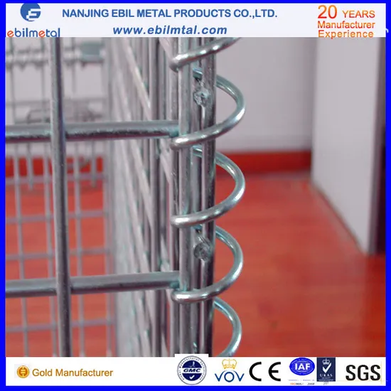 The folding wire container have the uniform specification and fixed capacity that makes the inventory easily clear, sort and count, so as to improve the utilization ratio of warehouse efficiently. Moreover, the sturdy and durable product is easy to carry and can be recycled. The improved wire container can be stowed in the rack and assembly line and can also be stacked; The wire container with casters can be movable; The wire container with PVC slab and steel slab can avoid the missing of the small spare parts; The wire container with the enlarged mesh space can be used to deposit the paper box and light goods. In a word, the products can not only be used in the workshop of the factory but also in supermarket for sales promotion and storage.