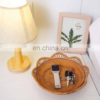 Product DescriptionHot SAle Rattan Key Holder Bowl for Entryway Modern Remote Tray for Coffee Fruit Bread Nuts Candies Storage Box BasketThe rattan tray, which is suitable for decorative purposes, is suitable for use as a tea tray, a serving tray such as a coffee tray, a presentation tray such as a ring tray, and a decorative candle tray.This beautiful tray is great for serving breakfast, dinner, fruit, or other small meals. It has a simple design that should go well with most home decoration styles and is made from eco friendly material. Hand-woven by local craftsmen, suitable for use in all living spaces, is durable and environmentally friendly. – It completes the elegance in presentations and is used to carry our treats.Plant Fiber TypeRattanTypeStorage TraysApplicable SpaceBathroom, Living Room, KitchenProductFood containerShapeRoundNo. of TiersSingleCommercial BuyerRestaurants, Food & Beverage Stores, Super Markets, Hotels, Gifts StoresFunctional designMultifunctionRelated ProductRecommended By SellerMain MaterialMain MarketsPacking & DeliveryOur Selling PointsCompany Profile
