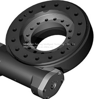 To accommodate the rotation of the relative rotating structure, you can design the installation location parallel to the ground or with a few degrees of slope. The fence type hydraulic slewing drive, hydraulic slew drive mechanism is assembled by a fenced base, a slewing ring, a toroidal worm and an accessory component. The motor or hydraulic motor can be used as a power input source to drive the speed reducer to rotate clockwise and counterclockwise. Due to the use of the slewing bearing as the main design component, the device has a strong overturning moment and axial force, and the same factor of the reducer, the device has a small size, convenient installation and maintenance.