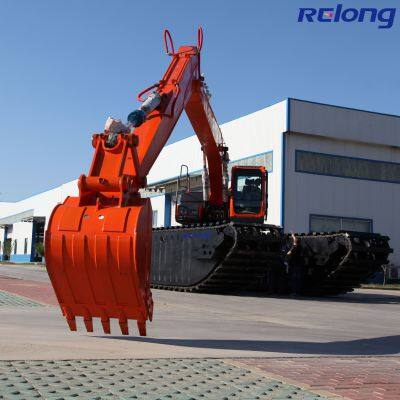Amphibious excavators are multi-purpose excavators used in land, shallow water, marsh and deep water areas. After years of practical testing, Relong amphibious excavator has been recognized and trusted by the majority of users. The upper half structure can choose the excavator brand and all kinds of machine you need. Various types of buoyancy tank have been designed and widely used, which can be adapted to 5-40 ton excavator, and can also be customized according to your working conditions and requirements, in accordance with your exclusive scheme.
