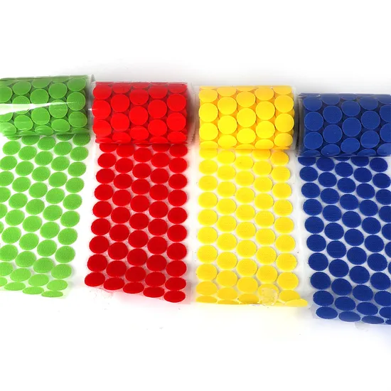 8.Cuts and Shapes hook and loop:Die cuts,kiss cuts, coins and pieces are available in all widths of tape with standard backing or adhesive backing.Rules: round, square, triangle, rectangular, size according to customers' requirements.