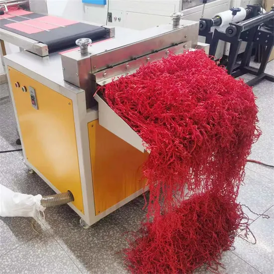 Product DescriptionThis crinkle cut paper shredder cutting machine can make paper in two effects - crinkle cut and strip cut. It is suitable to be used as box filler/packaging materials for gift packing. We have 2 models, one model just cut paper strips, the other model can cut both crinkle paper & paper strips.