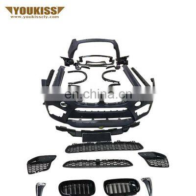 Product DescriptionSpecificationSubjectHigh Quality Car Bumper For BMW X5 F15 Upgrade X5M PP Material Body Kits Grille Side Skirt Wheel Arches Rear Diffuser With TipsProduct nameBody KitsMOQ1 set Stockin stockDelivery timeAfter you finish the payment, we can deliver for you at any timeDetails ImagesPacking & DeliveryAs for the delivery, we provide DHL, FEDEX, TNT, UPS, EMS... also could by Air, by seaIt's up to you, if you are not in a hurry, we suggest you choose sea.Company Profile If you have any questions, please feel free to contact us, we will uphold customer-oriented philosophy to provide you with the most professional, most comprehensive and highest quality service。FAQ1. how can we guarantee quality?Always a pre-production sample before mass production;Always final Inspection before shipment;2. why should you buy from us not from other suppliers? a.We have the first class equipment b. We will make the product to satisfy the customer Hold the flag of continuous improvementc.The strength support for realizing the higher ideal, from this moment we shall be of one mind and seek more higher better quality and more excellent credit and to realize the perfection in the unceasing creation. d.We provide car body kits, front grille, diffuser ,rear view mirror shell, spoiler, exhaust pipe, wheel hub and carbon fiber products and carbon fiber interior trim. e.We provide you 24 hours customer servicef.After sending, we will track the products for you. When you got the goods, test them,install, and give me a feedback.If you have any questions about the products, contact with us, we will offer the solve way for you.3. what services can we provide? Accepted Delivery Terms: FOB, CFR, CIF, EXW, FAS, CIP, FCA, Express Delivery; Accepted Payment Currency: USD, EUR, JPY, CAD, AUD, HKD, GBP, CNY, CHF; Accepted Payment Type: T/T,L/C,Credit Card,Western Union,Cash; Language Spoken:English,Chinese4: What about the delivery time?1-7 days ( most of products are in stock)5: Do you have any certificate?Yes, like certification.