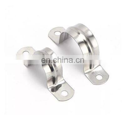 304 Stainless Steel Saddle Pipe Clamps for TubesProduct DescriptionFeature:• Compressed and pad lockable• Compressed securely• Best corrosion resistance• High-quality steel, well adapted to acid, alkali, high temperature and other special circumstances• Meets European standard Advantage: • Vast Material Resources• Strictest Quality Control• Competitive Price• Excellent Service• Prompt Delivery• Safe and convenient to operate ItemV097NameSaddle pipe clampMaterial304 Stainless steelColor Silvery or Customized colorFinishZinc plated,GalvanizedOEMAvailableProcessStamping,Bending,Cutting,PunchingSizePictureMOQ5000pcsApplication Tubes,PipesSamplesAvailableProduct showPls provide us the material ,drawing ,including thickenss ,length ,width,the size of the hole ,quantity so that we will quote for you.Hot Sale-Stamping Production Line Company InformationCangzhou Ruichi Hardware Manufacturing Co., Ltd. is located in Cangzhou city, Hebei province, which is near to Beijing. It is a professional manufacturer and supplier of spare parts specializing in stamping, sheet metal, CNC machining, chasis and cabinets. The products are widely used in automobile, furniture, construction, electrical appliances, packaging, rail transportation and other industries. With rich production experience and good service and reputation, to provide quality products and services for related industries.Our factory has advanced production equipments and capacity, and professional design team, currently covers an area of 12000 square meters, we have 100 staffs in the production line and12 designers with the capacity to meet the need within 500 tons of stamping, more than a numberof 200 production equipments including CNC punching machine, hydraulic machine, laser cutting machine, bending machine, drilling machine, milling machine, lathe, grinding machine, line cutting machine, sawing machine and so on. In addition, we have surface treatment and auxiliary equipments including pneumatic pressure welding machine, high frequency heating equipment, electrogas welding, argon arc welding, electroplating, powder coating, injection molding, electrophoresis paint and so on, they could work highly efficient. We could meet different requirement to the materials such as stainless steel, 65Mn, alloy steel, pickling plate, galvanized sheet, aluminum plate, copper plate so on, to provide fast, stable and reliable OEM services for the customers.Certifications FAQ1. How to start OEM orders?Send drawing or sample - get price - pay - make mold - confirm sample - mass production - payment -delivery.2. What are your terms of payment?We accept t/T, l/C, trade assurance, credit card, Western Union, etc3. Can you customize the packaging? The logo, carton and pallet can be customized.4. How do you guarantee the quality of your products? Better control from raw materials, production, processing, packaging, storage until to shipment. And we passed the ISO9001 quality management system certification.5. What kind of payment terms you use for ship the gods? We support FOB, CIF, CFR, DDU, DDP and so on, we have very rich experience ship gods directly to customer's plant.6. After-sales. Quick response day and night.