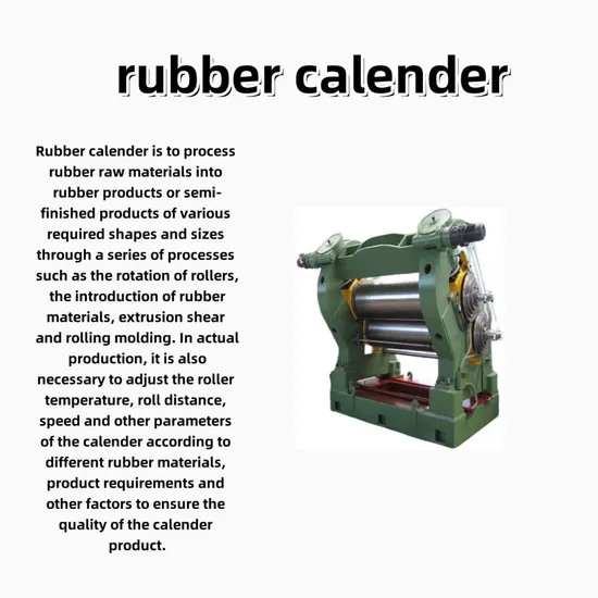 Rubber calender usually consists of two or more rollers arranged in a certain form, which will rotate relative to each other under power drive. In general, there is a certain speed ratio between adjacent rollers, such as the speed of one roller is faster than that of another roller, which can make the rubber material be better squeezed and shear between the rollers. When the machine is started, the raw glue or compound is placed between or above the two rollers, and the compound is pulled into the gap between the two rollers due to the friction generated by the rotation of the rollers.After the rubber material enters the roll gap, it will be subjected to strong shear and extrusion action. The linear speed difference between the two rollers causes the rubber material to suffer uneven force between the roller gaps, resulting in a shearing effect, which cuts the macromolecular chain of the rubber material like scissors. At the same time, the molecular structure of the compound changes due to the extrusion of the roller, and the constant change of the gap also causes the compound to be repeatedly squeezed and stretched. With the continuous rotation of the roller, the extrusion pressure of the rubber material in the roll gap gradually increases. The section of the roll gap is gradually reduced, so that the rubber material is subjected to strong extrusion and shear. In this process, on the one hand, the adhesive material has viscous flow and constantly expands and deforms; On the other hand, elastic deformation can occur. These two deformation processes are closely related to the fluidity and viscoelasticity of the compound. After the extrusion and shearing action of the roller, the rubber raw material is rolled and formed. According to different production needs, the film can be made with a certain thickness and width, or the rubber material can be squeezed on the skeleton material such as textile and steel cord to complete the hanging operation, and the operation of the rubber embryo pressing and the lamination of multi-layer film can also be carried out Machine Feature