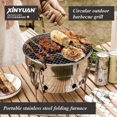 Portable stainless steel picnic folding circular outdoor barbecue grill
