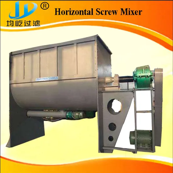 The horizontal screw mixer is driven by the inner and outer spiral rods installed on the mixing shaft to drive the material in the barrel so that the mixer can turn the material in the barrel to the maximum extent.The rods are designed to be opposite between the inner/outer spiral rods and left/right spiral rods.When the mixer is working,the inner spiral rod bring the material near the axis to rotate axially and the axis is pushed to the two sides from the inside.The outer spiral rod drives the material near the barrel wall to rotate axially and the axis is pushed to the inside from both sides.Then it will make the materials convection circulation and shearing blending in the barrel to make the materials are quickly and uniformly mixed in a short time.