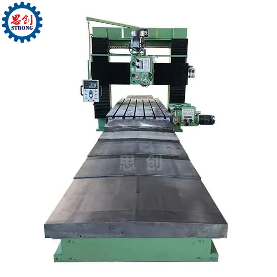 Gantry milling machine is a milling machine with portal frame structure, horizontal long bed structure and electrical control system. The gantry milling machine is a large and efficient general-purpose machine tool. The machine tool has good rigidity and is suitable for strong milling. It is mainly used for small batch and batch production to mill the planes and slopes of various large and medium-sized workpieces. The bed is made of one-piece casting, which has good rigidity after tempering, and the guide rail is finely ground by precision guide rail grinder. After being finely ground by the grinder, the carriage is also manually scraped to achieve good adhesion with the guide rail of the bed. The main drive system adopts advanced AC variable frequency vector control, stepless speed change of the table, which greatly improves the work efficiency and effectively saves man hours. The feeding of milling power head up and down the left and right columns of the beam is stepless regulated by the frequency converter, and the lubrication mode of the whole machine is automatic timing lubrication system.