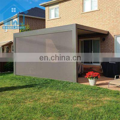 Product NameModern design bioclimatic motorized aluminium louvered pergola Materials Details1,Post: aluminum alloy 6063 T5 2,Blades : aluminum alloy 6005 T5 3,Beams: aluminum alloy 6063 T5 4,Gutter :100x100x2mm colors can be customizedControl wayMotorized/ManualFunctionWaterproof ,sunshade,windproof ,snowproof, house space extendingApplicationVilla,balcony ,garden ,backyard ,roof ,restaurant,decking ,swimming pool and so onWind Resistant180-220 KM/HSnow Loading60-100cmSizePopular standard size:3x3x2.5、4x3x2.5、5x3x2.5、6x3x2.5 or can be customizedOther related materialsSide screen/curtains, side shutter ,LED lights,heater ,fans,glass doors,outdoor furnitureInstallationWe will provide very detailed drawing and video for the installationOthers1.MOQ:1 set, we welcome small order 2.Production: we are factory , we can provide 10-15days fast production time 3.Warrenty:10 years 4.Color:White, Grey, Black, or customized colors availableFAQQ1. Is this aluminium louvered pergola easy to install?A: We have the assembly manual instruction specifically made according to your project site. It's a DIY product designed to be easily assembled and we can provide installation video.Q2. How long is your products' warranty?A: All our products have 10 years warranty.Q3:How to guarantee the quality of the products?A:We have our own QC team to control the products quality for all our clients'orders before loading.Q4. How can i get a price of needed aluminium louvered pergola?A: Please give the exactly size and quantity of your required aluminium louvered pergola. We can give you a detail quotation and free design solution based on your requirements.Q5.I am a small wholesaler, do you accept small order?A: It's no problem is you are a small wholesaler, we would like to grow up with you together and our MOQ is 1 set.Q6. Is my first time to export from China, what if i have no experience?A: Don t worry, we have very professional sale will guide for and we can provide one stop solution including deliver the door to your home address with customs.Q7. What kind of payment terms would you accept?A: We usually accept T/T, L/C, Western Union, etc. If you prefer other payments terms, please feel free to discuss with us.Q8. What if i meet the problem after installing and using this aluminium louvered pergola?A: As our principle is our business had been built on hoes & backed by customer service.we are verified supplier in Alibaba. com and our can provide 10 years warranty, so if you meet any problem for using thisaluminium louvered pergola,welcome to contact.