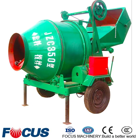 FOCUS JZC Series rotary concrete mixer is a kind of reversal discharging mobile concrete mixer, which can mix semi-rigid and plastic concrete.