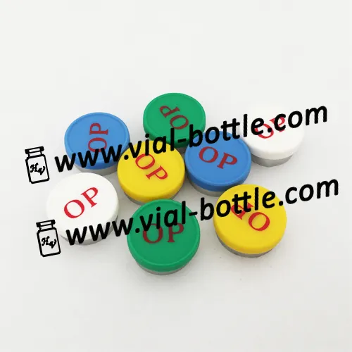 matt surface flip-off seals type with custom logo print on top, custom logo "OP" printed flip-off caps, special logo silk screen on flip-off cap vial tops, various colors 20mm flip-off seals for medicine glass vial,flip-off tops 20mm printed logo, flip-off vial seal cap for injectable vial