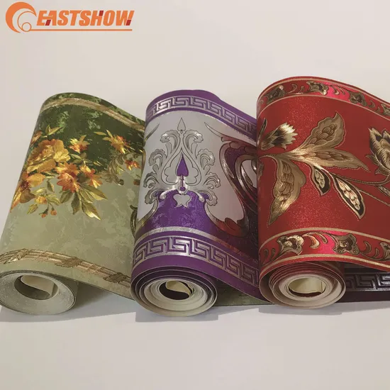 | Product | Luxury Gold Foil Colored PVC 3D Wallpaper Borders with Flowers (220g/sqm 17.6CM*5M) |