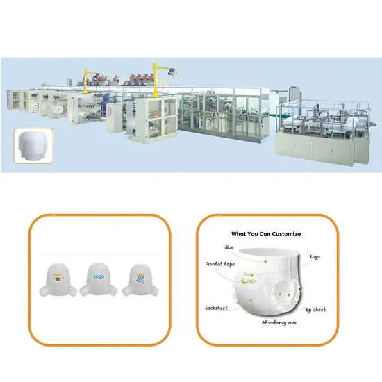 The baby's skin is more delicate than that of adults, and the quality of the raw materials as well as the rationality of the diaper's product structure are very high. The use of high-quality raw materials and reasonable product structure of this full servo H-shape pull up baby diaper machine production line can take care of the baby's delicate skin and keep it comfortable and dry all day long. The product structure upper&lower tissue (or airlaid), cotton core(mixed with SAP), ADL, PE film, Front tape, Topsheet hydrophilic Leg cuff hydrophobic nonwoven, "S" cut side, Waistband online. It is capable of producing four sizes of baby diapers (M/L/XL/XXL) and can also be customized to produce various types of baby diapers using a convenient and quick full servo drive digital number change system, according to the customer's product size design.