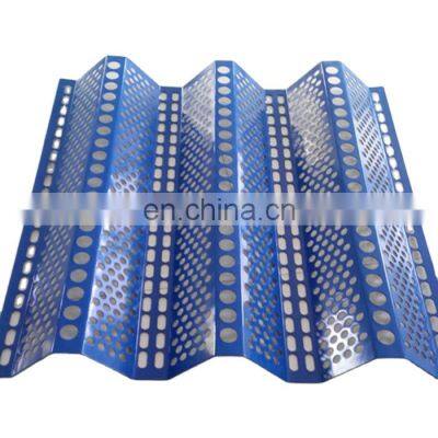 1 mm thickness galvanized perforated wind dust fence Product Description The windbreak wall / wind dust fence is based on the principle of aerodynamics. According to the results of the implementation of the on-site environmental wind tunnel test, it is processed into a certain geometric shape, opening ratio and different hole shape combined wind and dust suppression wall, so that the circulating air (strong wind) passes through the wall. In the body, the upper and lower disturbing airflow is formed on the inner side of the wall to achieve the outer strong wind, the inner weak wind, the outer small wind, and the inner side without the wind, thereby preventing the dust from flying. 2)Twins Peaks Wind Dust Net: Forming 900mm in width, peak of high is 50mm-100mm, Plate thickness 0.5mm-1.0mm. Length: 0-6m. We can produce according to customer's requirements. 3)Three peaks wind dust net: Forming 810mm—950mm in width, peak of high is 80mm, Plate thickness 0.5mm-1.0mm. Length: 0-6m. We can produce accordingto customer's requirements. 4)Perforated corrugated metal panels:Perforated corrugated metal mesh always show on circle hole shape, whatever one, two or three peaks wind dust net belong to perforated corrugated mesh, (the hole is circle shape). 5)Expanded corrugated metal panels: Expanded corrugated metal mesh always show on diamond hole shape, whatver one, two or three peaks wind dust net belong to expanded corrugated mesh,(the hole is diamond shape) Production Process:1 Shear bending: Shearing and bending are important aspects of production. Advanced processing equipment determines the quality of the product.2 Punching: It is the second link in the production of windproof nets. Professional production workers process high-quality punching products for you.3 Molding: The third part of the wind-proof net: wind-proof product processing and forming equipment, with continuous forming equipment of double peak and triple peak, the length of the windproof net can be 10 meters or even longer.4 Cleaning: The fourth step in the production of wind and dust suppression nets is to prepare for the electrostatic spray in the back. The cleaning effect of the cleaning directly affects the quality of the surface spray.5 Electrostatic spraying: The fifth step of the wind and dust suppression net is to spray the surface of the product to subject the product to various harsh environments without corrosion and rust. Company Information Anping Dongjie Wire Mesh Products Factory is founded in 1996 with over 5000sqm areas. We have more than 100 professional workers and 4 professional workshops: expanded metal mesh workshop, perforated workshop, stamping wire mesh products workshop ,molds made and deep-processing workshop. Certifications