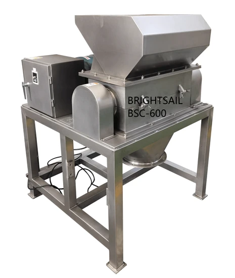 Application and work method of BSC herbal root crusher: It's applied in food and spice lines. Raw material is fed into the crush chamber through the feed hopper,then crushed and cut by the fixed and rotating knives in the chamber, and flows to the exit automatically under the effect of rotating centrifugal force.