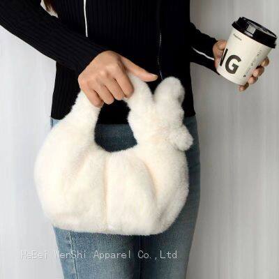 36New plush cloud hand purified color bag Autumn and winter bag women's hand bag all fluffy pleated handbag