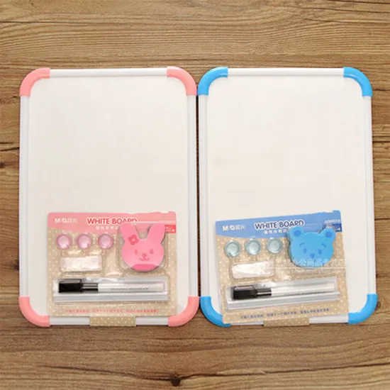 Main Features: Children White Board Set 23.7X34.7cm/34.7X46.7cm 2 Colors Mixed Including 1 Board, 1 Whiteboard Marker, 1 Bear Shape Eraser, 3 Magnets, 1 Marker Holder, 1 Hanging Rope |