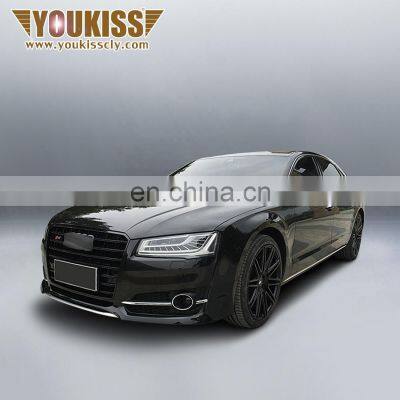 S8 style Front car bumper+ Grill+ diffuser+ tips For 15-17 Audi A8 car bodykitsFAQ FAQ1. how can we guarantee quality?Always a pre-production sample before mass production;Always final Inspection before shipment;2. why should you buy from us not from other suppliers? a.We have the first class equipment b. We will make the product to satisfy the customer Hold the flag of continuous improvementc.The strength support for realizing the higher ideal, from this moment we shall be of one mind and seek more higher better quality and more excellent credit and to realize the perfection in the unceasing creation. d.We provide car body kits, front grille, diffuser ,rear view mirror shell, spoiler, exhaust pipe, wheel hub and carbon fiber products and carbon fiber interior trim. e.We provide you 24 hours customer service f.After sending, we will track the products for you. When you got the goods, test them,install, and give me a feedback.If you have any questions about the products, contact with us, we will offer the solve way for you.3. what services can we provide?Accepted Delivery Terms: FOB, CFR, CIF, EXW, FAS, CIP, FCA, Express Delivery;Accepted Payment Currency: USD, EUR, JPY, CAD, AUD, HKD, GBP, CNY, CHF; Accepted Payment Type: T/T,L/C,Credit Card,Western Union,Cash; Language Spoken:English,Chinese 4: What about the delivery time?1-7 days ( most of products are in stock)5: Do you have any certificate?Yes, like certification.