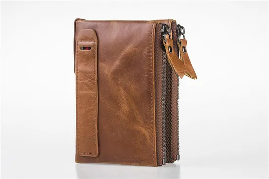 Hot!! Crazy Horse Genuine Leather Men Wallets Credit Business Card Holders Double Zipper Cowhide Leather Wallet Purse CarteiraPlease tell me the color and size you need when you place the order. Thank you.