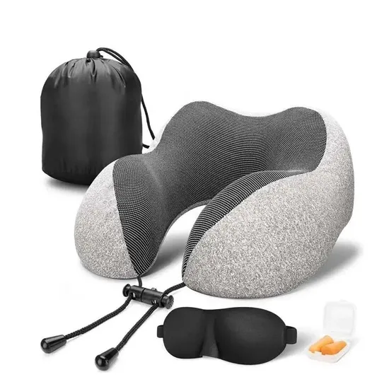 | Cooling Set Eye Mask Neck Rest Cushion 3 in1 U Shape Memory Foam Travel Neck Pillow |
