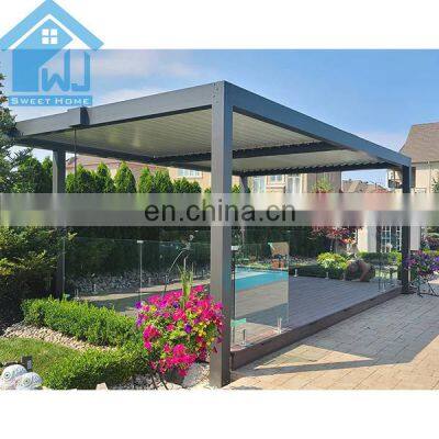Product NameModern design bioclimatic motorized aluminium louvered pergola Materials Details1,Post: aluminum alloy 6063 T5 2,Blades : aluminum alloy 6005 T5 3,Beams: aluminum alloy 6063 T5 4,Gutter :100x100x2mm colors can be customizedControl wayMotorized/ManualFunctionWaterproof ,sunshade,windproof ,snowproof, house space extendingApplicationVilla,balcony ,garden ,backyard ,roof ,restaurant,decking ,swimming pool and so onWind Resistant180-220 KM/HSnow Loading60-100cmSizePopular standard size:3x3x2.5、4x3x2.5、5x3x2.5、6x3x2.5 or can be customizedOther related materialsSide screen/curtains, side shutter ,LED lights,heater ,fans,glass doors,outdoor furnitureInstallationWe will provide very detailed drawing and video for the installationOthers1.MOQ:1 set, we welcome small order 2.Production: we are factory , we can provide 10-15days fast production time 3.Warrenty:10 years 4.Color:White, Grey, Black, or customized colors availableFAQQ1. Is this aluminium louvered pergola easy to install?A: We have the assembly manual instruction specifically made according to your project site. It's a DIY product designed to be easily assembled and we can provide installation video.Q2. How long is your products' warranty?A: All our products have 10 years warranty.Q3:How to guarantee the quality of the products?A:We have our own QC team to control the products quality for all our clients'orders before loading.Q4. How can i get a price of needed aluminium louvered pergola?A: Please give the exactly size and quantity of your required aluminium louvered pergola. We can give you a detail quotation and free design solution based on your requirements.Q5.I am a small wholesaler, do you accept small order?A: It's no problem is you are a small wholesaler, we would like to grow up with you together and our MOQ is 1 set.Q6. Is my first time to export from China, what if i have no experience?A: Don t worry, we have very professional sale will guide for and we can provide one stop solution including deliver the door to your home address with customs.Q7. What kind of payment terms would you accept?A: We usually accept T/T, L/C, Western Union, etc. If you prefer other payments terms, please feel free to discuss with us.Q8. What if i meet the problem after installing and using this aluminium louvered pergola?A: As our principle is our business had been built on hoes & backed by customer service.we are verified supplier in Alibaba. com and our can provide 10 years warranty, so if you meet any problem for using thisaluminium louvered pergola,welcome to contact.