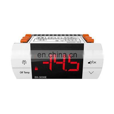 Product DescriptionDigital thermostat temperature controller digital microcomputer temperature controller EK-3030Main Features: * Touch temperature controller-using precising digital capacitive touch buttons,responsive without mechanical movement,higher reliability,longer life. * No menu keys,simple operation-user can through the"boot temperature","shutdown temperature"and other key parameters to set directly,without entering the menu,touch control,refused to cumbersome. * Integrated design,waterproof and dustproof,front panel proof reaches IP67. * Colorful slim,stylish novel-can be customized according to the user's needs,a variety of color options to meet customer needs. * Defrost cycle,unique defrost cycle poweroff memory function.even if the device loses power unexpectedly,can still start working properly defrost function to protect and improve the cooling efficiency of the unit. * Full-featured-has the function of Cooling/Heating,Defrost,Fan control,Temperature sensor and Defrost sensor(optional),can be used in majority of the refrigerate equipment control.Temperature measuring range-40℃~99℃Temperature controlling range-40℃~85℃Accuracy-30℃~50℃,±1℃±0.5dig; others, ±2℃±0.5digResolution0.1℃Power consumption<5WStorage temperature-25℃~75℃Work ambient temperature-5℃~60℃Work ambient humidity10%~90% non condensingPower supply110±10%(VAC), 50/60HzProduct size78.5*34.5*82mmInstallation size71*29mmRelated productPacking & DeliveryOur companySinoCool Refrigeration & Electronics Co.Ltd. is a large modern enterprise specializing in refrigeration accessories, we deal with the spare parts more than 10 years. Now have 1500kinds spare parts for Air conditioner , Refrigerator, Washing machine, Oven, Cold room;. We have relied on high technology for a long time and have invested huge amounts of money in compressors, capacitors, relays and other refrigeration accessories. Stable quality, superior logistics and caring service are our advantages.Exhibition