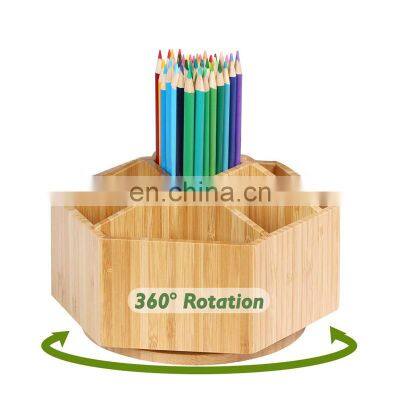 Multi-Function Bamboo Rotating Organizer Pen holder