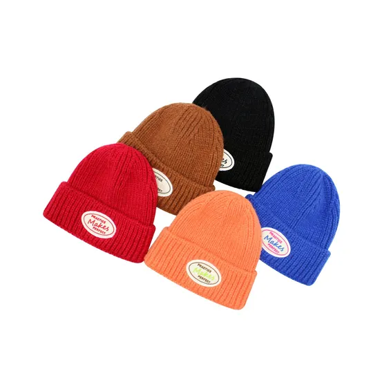 Custom Winter Warm Knitted Acrylic Cuffed ribbed Beanie ,appliqued embroidery