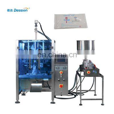 Automatic liquid pack filling machine gel liquid vffs packing machineMachine IntroductionPackaging ApplicationThis machine can packing the liquid or paste of foodstuff, chemicals and cosmetics.Such as shampoo, edible oil, cream, tomato paste, honey, juice. etc.Packing EffectThis machine can provide back-seal packing.It can be upgraded to add the bag with hanging holes, bag with easy tear, gusseted bag and quad sealed bag effect according to the needsMachine Structure and ParametersModelDS-320LYDS-420LYDS-520LYDS-620LYDS-720LYFilm WidthMax.320mmMax.420mmMax.520mmMax.620mmMax.720mmFilling range150~800ml150~1500ml150~2000ml150~4000ml150~400mlBag sizeL:80~240mmW:50~150mmL:80~300mmW:60~200mmL:80~350mmW:80~250mmL:150~350mmW:200~350mmL:100~450mmW:100~350mmPacking speed5~70bags/min5~60bags/min10~50bags/min5~50bags/min10~40bags/minOptional deviceAngle of plug-in device, Linking bags device, Gas-filling device, Punching deviceMachine Characteristic1)Imported PLC full computer control system, color touch screen, easy to operate, intuitive and efficient.2)Impoted servo film transport system, imported color code sensor, accurate positioning, excellent overall performance and beautiful packaging.3)A variety of automatic alarm protection functions to minimize losser.4)Flat cutting, pattern cutting, linking cutting can be realized by changing the tools;easy operation with smooth bags.5)Bag-making equipment can be changed according to specific requirement of customers and products.6)Optional English or other languages screen display, easy and simple operation. Both packaging speed and bag length can be set with one click.7)All machines have CE certification and ROSH certificate.Details ImagesMachine WorkflowThis machine is easy to operate. Just set the parameters on the screen, and then you can start the machine. Put the product in the hopper, the machine will automatically pull the film, the bag is formed, sealed, and finally the bag is cut.Easy Control Touch ScreenLanguage: Standard English and Chinese. Any language can be customized.PLC: Imported PLC microcomputer with interface and frequency control enables bag parameter setting more convenient and easier.Liquid Metering PumpHigh-precision volume measurement device, wide application range, accurate measurement. Bag Former#304 stainless steel bag former is for shaping the film into a bag.Different bag width needs different bag former.Sealing and Cutting DeviceThe wheels will pull the film to this cutting device, which will create the top and bottom of the bags.Related ProductsWhy Choose UsVR1. Professional and Strong TeamDession has a professional team that can provide customers with various packaging solutions. After fully understanding the customer's needs, we provide the most suitable packaging solution to the customer. Then start the production of the machine. We have a strong production and processing capacity, from the customized processing of accessories to the assembly and debugging ofthe machine. Finally, it is packaged and shipped, and it only takes a week to complete.2. Excellent transportation serviceAccording to the needs of customers, we can provide sea transportation, air transportation, and land transportation services, so that you can get the machine as soon as possible. Provide door-to-door transportation services.3. Timely and effective after-sales serviceChoosing us is not only buying a machine, but also our professional and timely service. 1. When the machine is delivered, we will attach a video of the installation and operation of the machine, so that you can use the machine quickly. 2. All electrical appliances of our machines have a one-year warranty, and we will replace them if they fail. 3. When your machine fails, we will have professional engineers to provide professional online after-sales service to help you solve the problem. 4. If the problem cannot be solved online, we will arrange an engineer to repair it on site within a week.Buyer FeedbackWe have 8 years of experience in foreign trade and export, and now our customers have spread to 90 countries all over the world. With our high-quality machines and professional services, we have won unanimous praise from our customers.Company ProfileDession a leading manufacturer of Packaging machine and supporting facilities, which has successfully developed more than 80 kinds of packaging machines. Dession Packaging Machine has widely applied for different fields throughout the world, such as food/ industrial food, medicines, hotel supplies, disposable goods, rubber goods, daily appliances, hardware fittings, sporting goods, toys etc. Dession has more than 8000 square meters of production plants, 5 production workshops and a parts processing workshop, including small vertical machine production workshops, vertical machine production workshops, pillow machine production workshops, cartoning machine production workshop and filling machine production workshop.FAQQ1:Do you have manual or operation video for us to know more about the machine? Yes, not only manual or operation video, 3D drawing also available to make as per your design,also the video we can make of testing the material from our packaging machine if your packing goods easier for us to find from our local market. Q2:How can I trust you for the first time business ?Please note our above business license and certificate. And if you don't trust us, then we can use Alibaba trade assurance service, guarantee your money, and guarantee your machine's on-time delivery and machine quality.Q3:Is engineer available to serve oversea?Yes, but the travel fee is paid by you. So actually to save your cost, we will send you a video of full details machine installation and assist you till the end.Q4:How can we make sure about the machine quality after we put the order?Before delivery, we will send you the pictures and videos for you to check the quality, and also you can arrange for quality checking by yourself or by your contacts in Chin