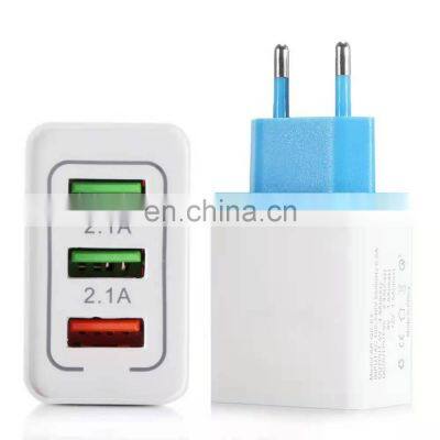 High Quality EU Standard 3 Ports Phone Charger Wall Travel QC3.0 USB Charger for Mobile Phone