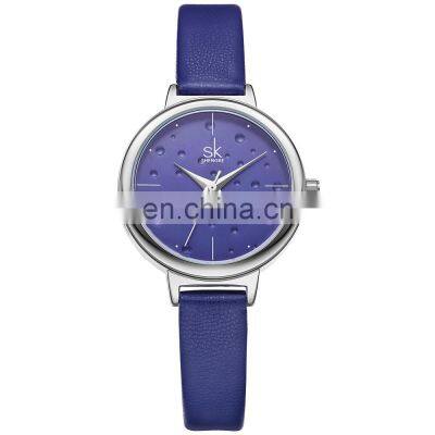 SHENGKE Simple Lady Watch Water Drop Images Dial Soft Leather Band Japanese Quartz Movement K8024L1. What's your MOQ? Can I mix styles and colors?A: Take our brand logo watches for wholesale is no MOQ limited , but if customized your logo (OEM ), the MOQ is :Alloy case watch 300pcs/style,can mix 2~3 colors ,stainless steel case watch 500pcs/per style .can mix 3~5 colors 2. Can we print our own logo?A: Yes,we can print your logo or design on the band, dial, buckle, back, case and other place, usually the color of the logo is one color.3.What about the warranty?A: 12 months movement warranty, and we are very confident with our products, and we will pack it very well, so usually you will receive your goods in good condition. But to avoid any subsequent trouble regarding quality issue, we suggest you check the watches once you receive them, and let us know if there is any damaged ones, so that we can deal with it accordingly.4.Do you offer Drop shipping (Blind shipping )?Yes , we offer Drop shipping/Blind shipping,we haven enough experience in drop shipping ,every day we have many watches to send out many countries for drop shipping.5. Do you do custom watch boxes?Yes, we do custom watch boxes. We can follow your requirement to make the boxes ,or you can select our boxes with your logo.6. What movement do you usually use in your watches?We usually use Japanese movement ,Swiss movement, and Chinese movement, for example Seiko,Citizen,Miyota,Ronda ,Kingstar we use most.7.What is your packaging?1.Not over 5 pcs order ,each watch will be put into a bubble bag then packaging well into a safe white bag(as below picture)2.Over 20 pcs order ,each watch will be put into a opp bag, then put into a bubble bag, after that all total put into a white box.(as below picture)For OEM/ ODM Products packaging:Normal packaging 1.Each piece will be put into a poly bag;2.20 pieces into a white box;3.10 white boxes into a 39*30*33cm carton; Special packaging: As per your request. Note: Only Normal packaging service is free.