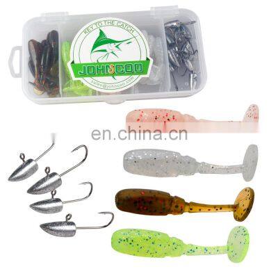 JOHNCOO Rockfish Worm Set Fishing Lures 10pcs Jig Head Hooks +40pcs Soft Bait