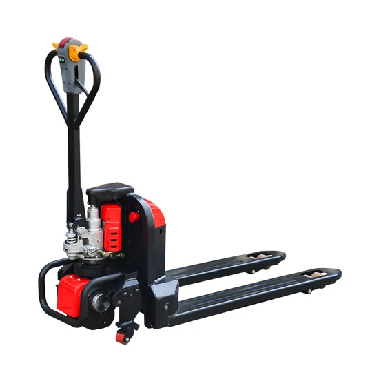 Product Description This electric stand-on pallet truck is operated by standing drivers and is mainly used for transporting goods in warehouses and factories. It is equipped with a shock-absorbing pedal and has good maneuverability and flexible steering.