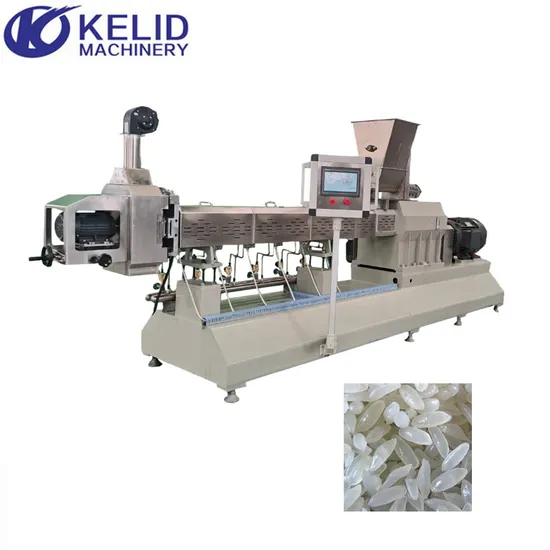 Artificial rice machine is developed to meet the demands of food nutrition. This production line is improved to avoid the loss of nutritional elements in the rice which is made by the traditional rice processing. It has characters of high automatic, easy operation, energy saving and environmental protection. The raw materials for nutrition rice extrusion line can be rice, black rice, buckwheat and other grains(broken rice and rice bran can be reused). You can also add additional nutrient components, such as vitamins, minerals etc. After extruding, forming and drying, you can get the nutritional artificial rice, which is eaten same as natural rice.
