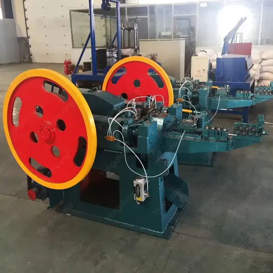 Nail making machine adopts plunger type structure to ensure its high working speed, low noise and low impact characteristics. It has wide uses, simple operation, and reliable working condition. The raw material can be waste scrap or new wire rod. The nail point and the nail head can be formed at one time with a high efficiency.
