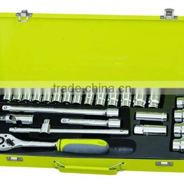 content | 1. 18pcs 1/2" socket 2. 2pcs 1/2" extension bar 5" & 10" 3. 2pcs spark plug socket 4. 1pc 1/2" universal joint 5. 1pc 1/2" ratchet handle 6. 1pc 1/2" sliding bar |