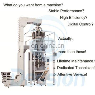 High Productivity 5kg animal bag feed packaging machine fish feed pellet packing machine with electronic scaleProduct DescriptionApplication & Bag typeThis is a multi-head scale granule packing machine that can package peanuts, rice, chocolate, candy, dried fruit, hardware and other products.Can make a variety of bag types, mainly based on back sealing bag type.Machine structureTechnical ParametersModel DS-420AZDS-520AZDS-620AZDS-720AZPacking sizeL:80-300 W:60-200 mmL:80-350 W:80-250 mmL:150-350 W:200-350 mmL:100-450 W:100-350 mmPacking speed5-60 bags/min10-50 bags/min10-40 bags/min10-40 bags/minMachine size(L×W×H)3789(L)*1530(W)*3111(H)mm1488(L)*1080(W)*1490(H)mm1700(L)*1250(W)*1780(H)mm1716(L)*1260(W)*1820(H)mmFilling range150-1500ML150-2000ML150-4000ML150-4000MLFilm materialOPP/CPP,OPP/PE,CPP/PEOPP/CPP,OPP/PE,CPP/PEOPP/CPP,OPP/PE,CPP/PEOPP/CPP,OPP/PE,CPP/PEMachine Weight650kg750kg850kg950kgMain Features1. The section where the material contact is stainless steel as the body of machine is optional for complete or partial stainless steel and all out equipments have passed the CE Standard.2. Computer controller is the first patent of China; inverter and power switch are all imported with advanced technology.3. Optional English or Chinese screen display, easy and simple operation.4. High-sensitivity photoelectric color tracing and digital input of cutting position get more accuracy.5. Embedded sealing , enhanced structure of heat sealing intelligent temperature controller and excellent heat balance make all kinds of packaging materials possible with good performance, low noise, clear cutting pattern and strong sealability.6. Packaging speed and length of bags can be set to some extent without further adjustment and parts changing. Packaging speed and length of bags can be set to some extent without further adjustment and parts changing.working processsend inquiry to me Packaging and DeliveryTest machine, initial protectionTest the machine before packing machineļ¼Take a photo and take a video to confirm with the customer.Wooden box packagingAfter that, pack the machine in a wooden box.Stick the hoe and take the license plate of the transport vehicleLoading and transporting, sending to the portThe machine will be transported to the dock and waiting to be transported to your country.CertificationsOur CompanyFoshan Dession Packaging Machinery Co.,Ltd is located in nanhai district, foshan,It is a collection of research, production, sales and after-sales service as one of the production-oriented enterprises.Machines are widely used in food, articles for daily use, hardware industrial products, medical supplies, hotel one-time items, etc.large vertical workshop with various types of large packaging machines. Provide customers with choice, welcome to visit our factorysmall vertical workshop, which has various types of small packaging machines, water hoods, snuff machines and other small packaging machines. Provide customers with choice, welcome to visit our factorypillow machine workshop, which has various types of packaging machines that can pack all kinds of goods. Provide customers with choice, welcome to visit our factorySales Team & After-sales teamSales TeamOur sales team will provide you with professional services before and after the sale, mechanical recommendations, bag type, weight, etc. can be recommended according to customer needs, please contact us, let us serve youAfter-sales teamOur after-sales team is very strong, can solve various after-sales problems for customers, professional services, and solve customer problems in a timely manner.Customer PhotosFAQQ1:Do you have manual or operation video for us to know more about the machine?Yes, not only manual or operation video, 3D drawing also available to make as per your design,also the video we can make of testing the material from our packaging machine if your packing goods easier for us to find from our local market.Q2:How can I trust you for the first time business ?Please note our above business license and certificate. And if you don't trust us, then we can use Alibaba trade assurance service, guarantee your money, and guarantee your machine's on-time delivery and machine quality.Q3:Is engineer available to serve oversea?Yes, but the travel fee is paid by you. So actually to save your cost, we will send you a video of full details machine installation and assist you till the end.Q4:How can we make sure about the machine quality after we put the order?Before delivery, we will send you the pictures and videos for you to check the quality, and also you can arrange for quality checking by yourself or by your contacts in China.Q5:Will you provides the door to door service?Yes. Please offer us your final destination, we will check with our agent to see if it available, and most of the area is ok for us to clearing and sending in your countries.Very fast and convenient to our company.It's only half an hour's drive from guangzhou baiyun airport to our company.It's only 40 minutes' drive from guangzhou south railway station.If you have any needs, please contact me directly. I will arrange your trip to our factory. Thank you very much for your support.High Productivity 5kg animal bag feed packaging machine fish feed pellet packing machine with electronic scale