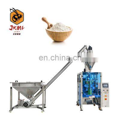 Factory Hot Selling Products Large Vertical Powder Packaging Machine Corn Flour Powder Packaging Machine PLC ControlProducts DescriptionApplication>What can this machine pack?packaging of materials requiring high accuracy of measurement or careful handling,such as milk powder, sugar powder, coffee powder, wheat flour, detergent powder, coconut powder,spice powder etc.If you need other bag types, we can provide the machine you need, please click to contact me. Machine InformationHigh precision screw measuring machineBag fromer and bag sealing deviceBag cutting deviceThe machine is equipped with inverter, PLC, servo motor, voltage regulator, etc. to ensure the stable operation of the machine.Machine ParametersMachine Host Model320L420L520L620L720L820LFilm Width(mm)Max.320Max.420Max.520Max.620Max.720Max.820Bag Length(mm)80~24080~30080~350150~350100~45080~500Bag Width(mm)50~15060~20080~250200~350100~350180~400Filling Range(ml / g)150~800150~1500150~2000150~4000150~4000150~6000Packaging Speed(bags/min)5~705~6010~505~5010~405~30Machine Powder220V50/60HZ2KW220V50/60HZ2.2KW220V50/60HZ3KW220V50/60HZ3KW220V50/60HZ3.6KW220V50/60HZ3.6KWMain Features1)Imported PLC full computer control system, color touch screen, easy to operate, intuitive and efficient.2)Impoted servo film transport system, imported color code sensor, accurate positioning, excellent overall performance and beautiful packaging.3)A variety of automatic alarm protection functions to minimize losser.4)Flat cutting, pattern cutting, linking cutting can be realized by changing the tools;easy operation with smooth bags.5)Bag-making equipment can be changed according to specific requirement of customers and products.6)Optional English or other languages screen display, easy and simple operation. Both packaging speed and bag length can be set with one click.7)All machines have CE certification and ROSH certificate.Optional DevicesDepending on your needs, you can choose to add the following configuration. Such as thermal transfer coding machine, linking bag device, gas-filled device, easy tearing device, gusseting device and hole device.Machine Working Process1st step: Setting the parameters you want by touch screen.2nd step: The screw measuring machine automatically measures and fills according to the set parameters.3rd step: The motor automatically pulls the film quickly, and the date printer prints the date at the same time.4th step: The bag former will make the bag automatically.5th step: The horizontal and vertical cutter device will seal the middle and of the bag.6th step: You will get the nicely paper or plastic bag type.Why Choose UsJIKE BEE MACHINERY has a professional team to provide customers with various packaging solutions. Fully understanding the needs of customers,engineers design the most suitable solution. We have our own processing and assembly workshop and quality inspection and debugging process to ensure the quality of the machine. After acceptance by the customer, they are packed in international standard wooden cases and shipped.Company ProfileFoshan Jike Bee Automation Equipment Co., Ltd. is a manufacturer of automatic packaging equipment.We are a production-oriented enterprises focused on product innovation, factory direct sales and perfect after-sales service in one.The automatic packaging equipment for granule, powder, liquid and sauce produced by the Jason company is at the advanced level of the industry,it can be customized production automatic material packaging line for all kinds of products .Mainly applicable to: food, hardware, drugs, daily chemicals, pesticides, fruits and vegetables, cosmetics, other industries.The company has its own patent and product technical certification, which can bring customers high quality equipment and worthy of customer trust.Customer PhotosOur customers have covered more than 80 countries around the world.And give us unanimous praise.CertificationsFAQQ1:Do you have manual or operation video for us to know more about the machine? Yes, not only manual or operation video, 3D drawing also available to make as per your design,also the video we can make of testing the material from our packaging machine if your packing goods easier for us to find from our local market. Q2:How can I trust you for the first time business ?Please note our above business license and certificate. And if you don't trust us, then we can use Alibaba trade assurance service, guarantee your money, and guarantee your machine's on-time delivery and machine quality.Q3:Is engineer available to serve oversea?Yes, but the travel fee is paid by you. So actually to save your cost, we will send you a video of full details machine installation and assist you till the end.Q4:How can we make sure about the machine quality after we put the order?Before delivery, we will send you the pictures and videos for you to check the quality, and also you can arrange for quality checking by yourself or by your contacts in China.Q5:Will you provides the door to door service?Yes. Please offer us your final destination, we will check with our agent to see if it available, and most of the area is ok for us to clearing and sending in your countries.