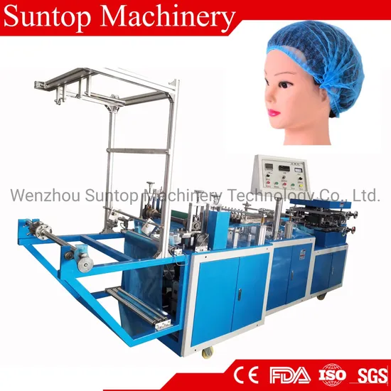Bouffant Cap Machine Medical Nursing Cap PE Head Cover Non-Woven PP Mop Cap Strip Shower Cap Disposable Cap Making Machine. It adopts ultrasonic heat sealing method, frequency conversion speed regulation, and produces non-woven materials and plastic film materials. The disposable dust-proof non-woven strip caps are integrated into the finished product from feeding to finished products. You just feeding the material (Non-woven or PE Plastic film and rubber band ),then you will get final product.
