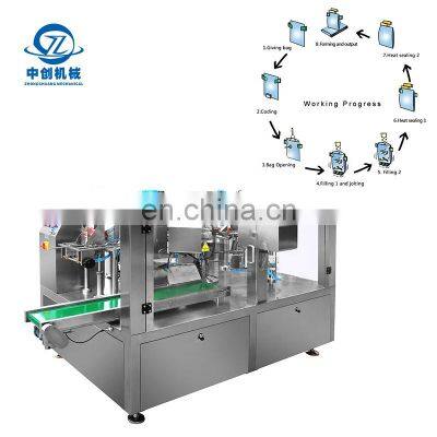 Product DescriptionHot sale sweet baking chocolate sunflower seeds sugar packing machine suger with high qualityHigh speed, automatically , high accuracyProduct DetailProduct nameWeigher Packing MachinePacking speed25-60 bags/minVoltage380V & 50/60HzBag width80-250mmBag Length100-350mmGross Weight1300kgPacking Weight30-3000GCompressed Air Consumed≤ 0.6 m³/minProduct Keywordssweet baking chocolate,sunflower seeds sugar packing machine,suger packing machine Model No.ZC-D200Brand NameZhongchuang MechanicalProduct Name8-station premade bag granular weigher packing machineSuitable Bag TypeStand-up pouch, Zipper Bag, Film, M pouch etcBag Size / Roll Film WidthL: 100-350mmW : 60-200mmPacking Speed25-60 bags /minsVoltage380V 50/60hzDimension (L*W*H)5258*3610*3655mmGross Weight1300KGAir Compressed≤0.6m³ / minAccuracy±1g (≤100g) / ± 1%( >100g) according to materialApplicationSuitable for candy, hard nut, rasin, peanut, melon seeds, chips, chocolate and other grains or irregular auto weighing packingMachine Surface material#304-Stainless steelWarranty1 year