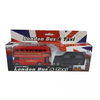 XINYU 5 Inches London Bus & Taxi Set Diecast Metal Cars Stimulated Alloy Vehicle Toys