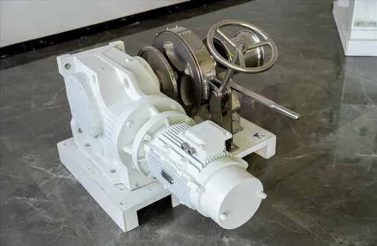 Marine anchor windlass is a machine that restrains and manipulates the anchor chain and/or rope on a boat, allowing the anchor to be raised and lowered.A notched wheel engages the links of the chain or the rope.A "trawl windlass" is a similar machine that restrains or manipulates the trawl on a commercial fishing vessel. The trawl is a sort of big fishing net that is wound on the windlass. The fishermen either let-out the trawl or heaves-up the trawl during fishing operations. A brake is provided for control and a windlass is usually powered by an electric or hydraulic motor operating via a gear train.
