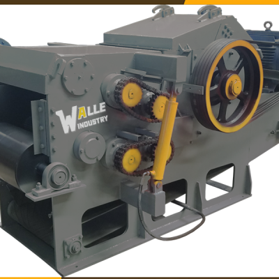 Drum wood chippers to the wood,waste board,carton stem, wood stem, wood log, wood branch, palm wastes waste veneers, all kinds of wood, coconut shell etc.Equipped with special blade steel 55SiCR and H12, specialized in processing materials with high toughness, also very durable with twice lifetime than normal blade steels, especially efficient for crushing plywood veneers.able to produce wood chips with even shapes and size, 30-50mm chips.