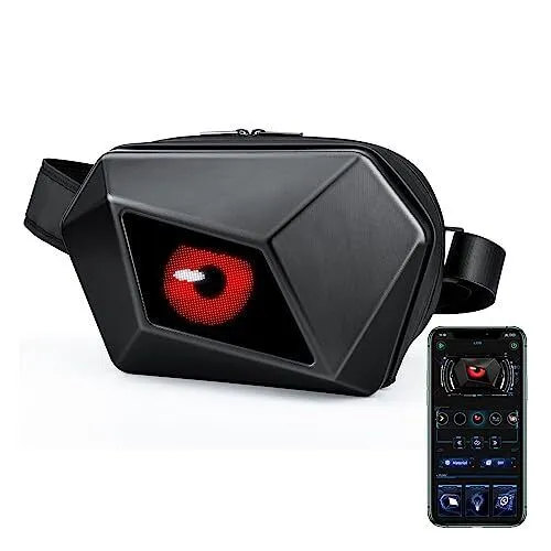 Custom DIY Smart LED Knight Sling Bag with Waterproof Hard Shell Bluetooth Cool Black Eye Motorcycle Bag