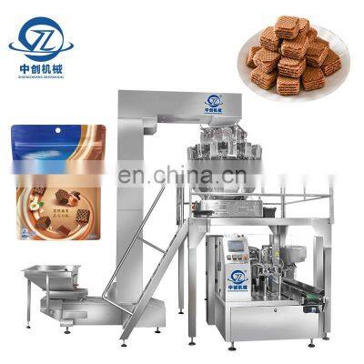 Product ParamentersItem NO.ZC-D200/250DimensionsL5258mm×W3610mm×H3655mmPacking Speed16-60 Bags/min (depending on products character and filling volume)Packing Bag SizeL: 100-350mmW : 60-200mm/80-250mmWeight1800KGAir Compressed air consemed≤0.6m³ / minAccuracy±1g (≤100g) / ± 1%( >100g) according to materialApplicationSuitable for Frozen French fries,candy melon seeds,jelly,frozen dumpling,pistachio,nuts,peanuts,almonds,raisins,chocolate,etc.Working Procedure1.Bag feeding2.Coding3.Opening4.Filling A5.Filling B6.Heat sealing A7.Heat sealing B8.Forming and outputDescription1.According to customer demand for customized, to recommend the appropriate products to customers.2.Storage racks devices which can Satisfy the products short stop ,which can keep the production line work continuously.3.Good service,If you have any questions, you can communicate by telephone video.Recommend ProductsProducts DescriptionCompany ProfileFAQTrade patterns 1. Lead time: 15-20 working days after receive deposit2. MOQ: 1 set.3.30% deposit+ balance payment before delivery by T/T, western union, cash.4. Loading Port: Shantou or Shenzhen Port Export Process 1. We will prepare goods after receive deposit 2. We will send goods to your warehouse or shipping company in China.3. We will give you tracking number or Bill of loading when your goods is on the way 4. Finally your goods will arrive your address or shipping port Frequently Asked Questions Q: First time import, how can I believe that you would send products? A: We are verified company by Alibaba to make transaction success, we support and recommend you to pay money to us by Alibaba Trade Assurance.Q: How about the quality of your product?A: Our products manufactured strictly according to national and international standard-- We have ISO certification-- We take a test on every product before delivery.Q: How to choose the machine type for our bags? A: Pls support us the following information about the bag and the food. 1) Bag pattern (Bag samples or pictures would be appreciated.)2) Bag size 3) The filling weight or volume 4) Material of food: powder/liquid/paste/granular/massiveness Q: What aftersales service or any question about products?A: This machine enjoys 1 year warranty
