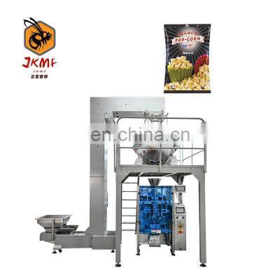 Factory direct selling automatic vertical weighing packaging machine popcorn packaging machine reasonable structureProducts DescriptionApplication>What can this machine pack?All kinds of grain material, bulk material with high precision and fragility which such as candy, melon seeds, chips, peanut, nut, preserved fruit, jelly, biscuit, currant, almond, chocolate, filbert, corn, potato crisps, pet foodstuff, puffed food, hardware and plastic can be weighed by the ration.If you need other bag types, we can provide the machine you need, please click to contact me. Machine InformationHigh precision electronic scaleBag fromer and bag sealing deviceBag cutting deviceThe machine is equipped with inverter, PLC, servo motor, voltage regulator, etc. to ensure the stable operation of the machine.Machine ParametersMachine Host Model320L420L520L620L720L820LFilm Width(mm)Max.320Max.420Max.520Max.620Max.720Max.820Bag Length(mm)80~24080~30080~350150~350100~45080~500Bag Width(mm)50~15060~20080~250200~350100~350180~400Filling Range(ml / g)150~800150~1500150~2000150~4000150~4000150~6000Packaging Speed(bags/min)5~705~6010~505~5010~405~30Machine Powder220V50/60HZ2KW220V50/60HZ2.2KW220V50/60HZ3KW220V50/60HZ3KW220V50/60HZ3.6KW220V50/60HZ3.6KWMain Features1)Imported PLC full computer control system, color touch screen, easy to operate, intuitive and efficient.2)Impoted servo film transport system, imported color code sensor, accurate positioning, excellent overall performance and beautiful packaging.3)A variety of automatic alarm protection functions to minimize losser.4)Flat cutting, pattern cutting, linking cutting can be realized by changing the tools;easy operation with smooth bags.5)Bag-making equipment can be changed according to specific requirement of customers and products.6)Optional English or other languages screen display, easy and simple operation. Both packaging speed and bag length can be set with one click.7)All machines have CE certification and ROSH certificate.Optional DevicesDepending on your needs, you can choose to add the following configuration. Such as thermal transfer coding machine, linking bag device, gas-filled device, easy tearing device, gusseting device and hole device.Machine Working ProcessEasy control touch screenImported PLC control system,Multi-function touch screen, easy to opera and efficient.Set the product weight and bag size to be packaged on the touch screen.High precision electronic scaleElectronic scales have the advantages of high weighing accuracy and fast speed. According to the set parameters, the electronic scale will automatically weigh and unload the material.Customizable packaging hostThe host is made of 304 stainless steel. The machine automatically seals and cuts the bag according to the set parameters to get a beautiful bag.Why Choose UsJIKE BEE MACHINERY has a professional team to provide customers with various packaging solutions. Fully understanding the needs of customers,engineers design the most suitable solution. We have our own processing and assembly workshop and quality inspection and debugging process to ensure the quality of the machine. After acceptance by the customer, they are packed in international standard wooden cases and shipped.Company ProfileFoshan Jike Bee Automation Equipment Co., Ltd. is a manufacturer of automatic packaging equipment.We are a production-oriented enterprises focused on product innovation, factory direct sales and perfect after-sales service in one.The automatic packaging equipment for granule, powder, liquid and sauce produced by the Jason company is at the advanced level of the industry,it can be customized production automatic material packaging line for all kinds of products .Mainly applicable to: food, hardware, drugs, daily chemicals, pesticides, fruits and vegetables, cosmetics, other industries.The company has its own patent and product technical certification, which can bring customers high quality equipment and worthy of customer trust.Customer PhotosOur customers have covered more than 80 countries around the world.And give us unanimous praise.CertificationsFAQQ1:Do you have manual or operation video for us to know more about the machine? Yes, not only manual or operation video, 3D drawing also available to make as per your design,also the video we can make of testing the material from our packaging machine if your packing goods easier for us to find from our local market. Q2:How can I trust you for the first time business ?Please note our above business license and certificate. And if you don't trust us, then we can use Alibaba trade assurance service, guarantee your money, and guarantee your machine's on-time delivery and machine quality.Q3:Is engineer available to serve oversea?Yes, but the travel fee is paid by you. So actually to save your cost, we will send you a video of full details machine installation and assist you till the end.Q4:How can we make sure about the machine quality after we put the order?Before delivery, we will send you the pictures and videos for you to check the quality, and also you can arrange for quality checking by yourself or by your contacts in China.Q5:Will you provides the door to door service?Yes. Please offer us your final destination, we will check with our agent to see if it available, and most of the area is ok for us to clearing and sending in your countries.