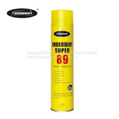 Sprayidea89 Embroidery Spray Adhesive is a strong-sticky adhesive perfect for applique, quilting and some handicraft etc. It works well in temporarily bonding lining to the back of clothing, and also can be used to hold appliques to fabric prior to sewing or embroidery.