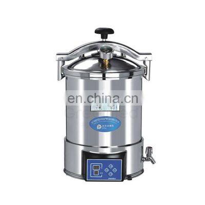 Products DescriptionBest price sterilization equipments portable surgical 24litter pressure steam autoclave sterilizer for saleautoclave sterilizer specification:UseThe product utilizes saturated steam to rapidly and efficiently sterilize articles. It can be used in hospitals, public healthcenters, health stations,clinics in factories and mines, scientific research institutes, etc, to sterilize medical equipment,surgical dressings, glass utensils, solutions,substrata. It can also be used as cooker in plateau areas and be used to make highquality drinking water in industrial and mining enterprises. Characteristics• Fully stainless steel structure. • Automatically shut off with beep reminding after sterilization.• Hand wheel type of quick-open door structure. • Electric heated.• Digital display of working status, touch type key. • Easy to operate, safe and reliable.Portable pressure steam sterilizerMODEL18HDD24HDDTechnical DataSterilizing volume18Lφ280×260mm28Lφ270×500mmWorking pressure0.14-0.16MpaWorking temperature126℃Temperature adjust range105-126℃Timer range0-99minMax.Safety pressure0.165MpaHeat average≤±1℃PowerAC220V 50HZ/2KWTransport dimension(mm)440×420×630440×420×750G.W/N.W14/12Kg15/14KgRelated ProductsCompany InformationCertificationsExhibitionFAQ1.Can I get some samples?Yes2.How about the delivery time?1).For Samply order will be prepared within 5 days.2).For bulk order.normally,it needs 20-40 days,it's based on you QTY.3.Can you do custom-made?OEM,ODM welcomed.1).Silk print your logo on the product.2).Customized colorbox.3).Design and produce based on your idea and draft.4.How about the payment?1).Amount less than $1000.You can pay for the order by Paypal,western Union.2).Amount more than $1000.You can pay for the order by T/T,LC.We support Trade Assurance - A free service that protects your orders from payment to delivery,it can make your funds safer.5.How about the shipping?1).For sample order,it can sent by express company like UPS,Fedex,TNT ect.We have strong cooperation with them and if you have express collected account,you will no need to pay us.2).For bulk order,it would sent by sea.We have our cooperation forwarder and you also can use your OWN forwarder.