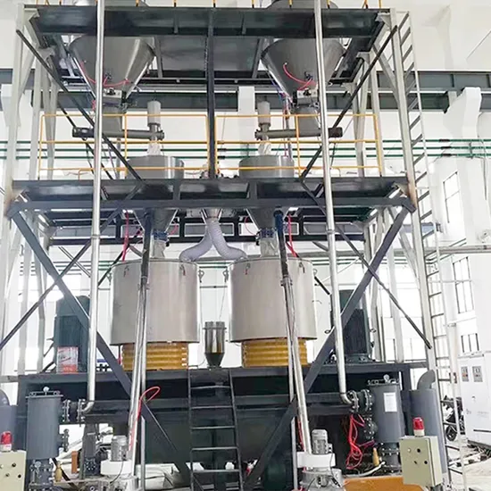 To avoid the the workers manual dosing mistake, we developed this PVC additives auto-weighing machine to instead of traditional manual weighing. It can weigh the additives automatically, such as stearic acid, wax, titanium dioxide, whitener, carbon black etc. This system could avoid the mistake of manual weighing and also keep the workshop clean.